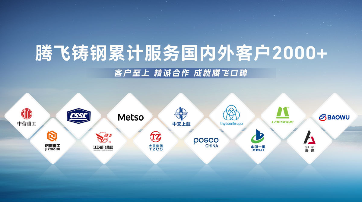 騰飛鑄鋼成立于2006年,位于全國鑄造基地河南省新鄉(xiāng)市,擁有員工300余人,是一家從事150噸以下碳鋼、低合金鋼、不銹鋼鑄鋼件研發(fā)、制造、服務(wù)為一體的國家高新技術(shù)企業(yè)?! 」就ㄟ^了ISO9001國際質(zhì)量管理體系認(rèn)證,擁有2項(xiàng)發(fā)明專 利,2項(xiàng)河南省科技成果、25項(xiàng)實(shí)用新型技術(shù),通過了“環(huán)??冃гu級B級企業(yè)”驗(yàn)收,先后榮獲“河南省鑄造行業(yè)綠色發(fā)展企業(yè)”、 “河南省科技型中小企業(yè)”、“河南省專精特新中小企業(yè)”等榮譽(yù)稱號?! 」緭碛?臺25噸電爐,4臺大型天燃?xì)鉄崽幚頎t、10米回旋自動拋丸機(jī)一臺, φ8m數(shù)控立車、φ10m數(shù)控滾齒機(jī)等各類高精裝備100余臺套,年產(chǎn)能3萬余噸,能為客戶提供從產(chǎn)品設(shè)計(jì)、木模加工、大型鑄造、大型加工一站式服務(wù),產(chǎn)品廣泛應(yīng)用于建材、冶金、鍛壓、冶金、水工、路橋、化工等多個(gè)重型行業(yè)。  長期服務(wù)于中信重工、中船重工、美卓、上海中交、萊歇、寶武、濟(jì)南重工等全球知名企業(yè),在行業(yè)內(nèi)擁有較高的市場知名度和美譽(yù)度。